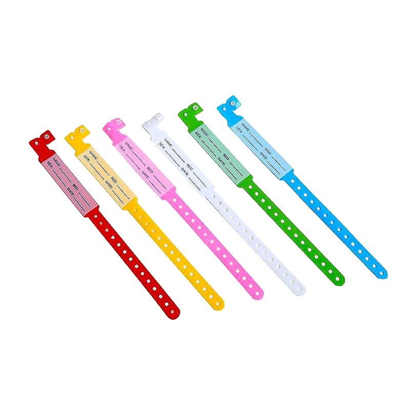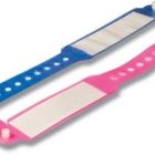Bio-compatible with human skin. Made of soft vinyl plastic with insert-on paper card